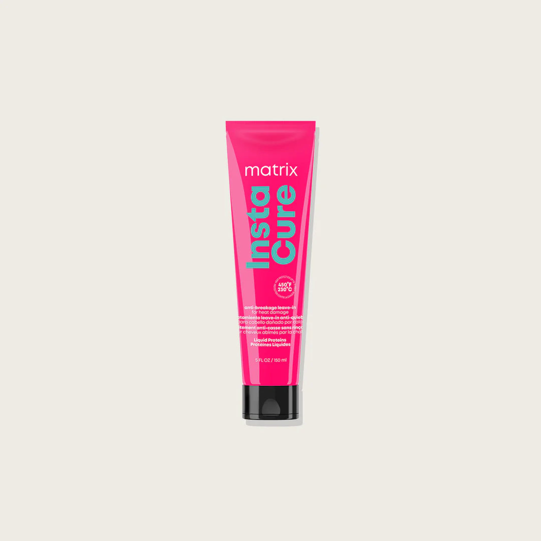 The Instacure Anti-Breakage Leave-In Treatment by Matrix revives dull, fragile hair, making it healthier, softer, and stronger. Infused with liquid proteins, this treatment shields hair from breakage and heat up to 450°F (230°C). Suitable for all hair types and textures, it repairs heat-damaged hair, reduces frizz, and leaves hair smoother, shinier, and up to 60% less damaged.
